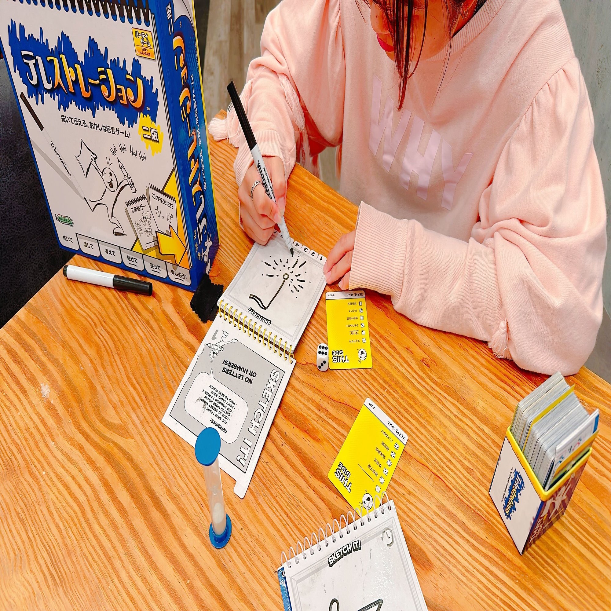 絵で書かれた内容をうまく読み取ることができないと、全く異なるものに変わって最後まで伝わってしまうのがとても面白かったです。お題になる内容もユニークなものが多かったので楽しむことができました。