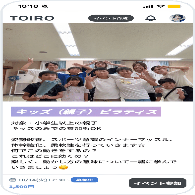 TOIROのアンケート機能から事前に参加されるお子さんの年齢や人数を把握することができるので、参加者に寄り添った場所選びにも役立っています。