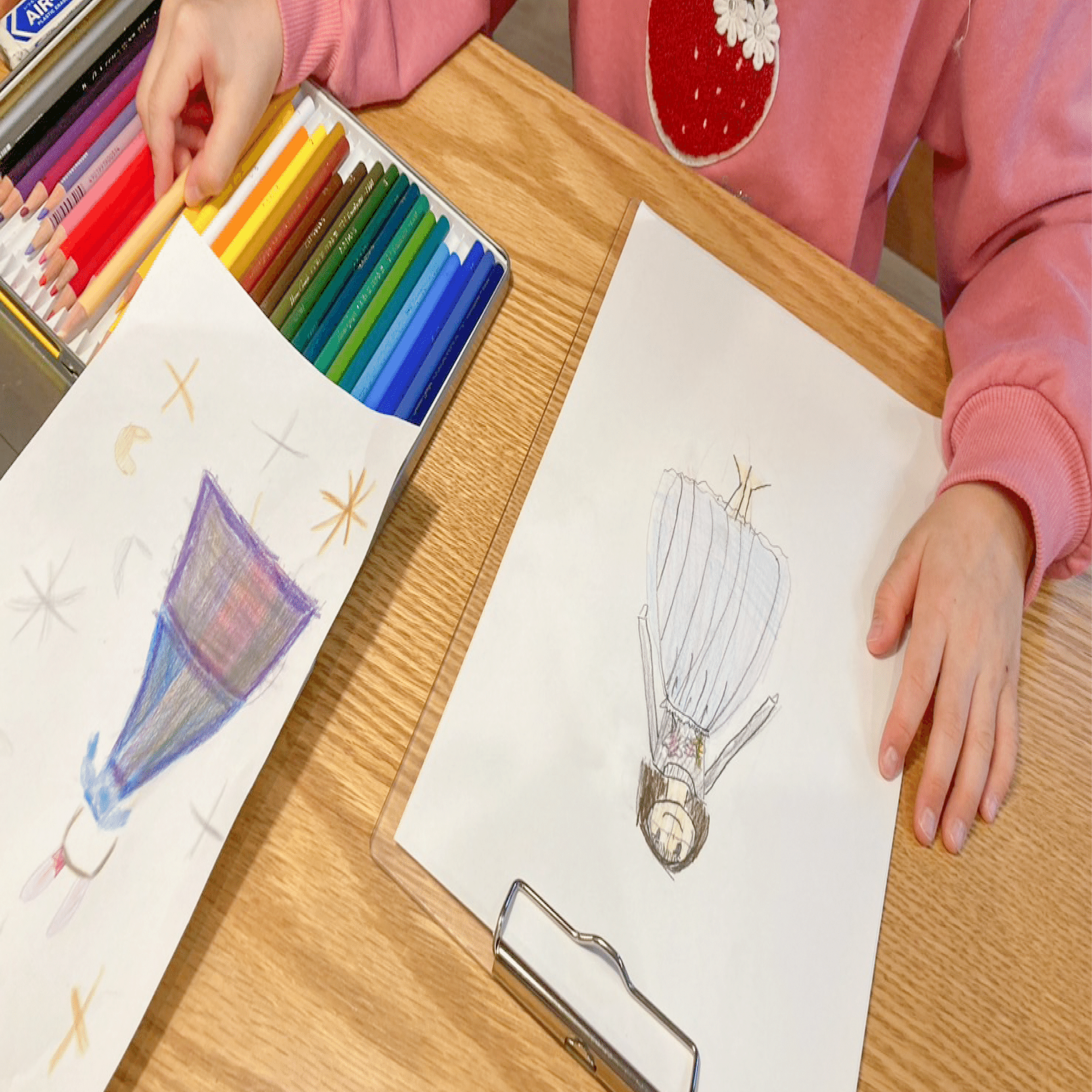現在は無料でデザイン画のレッスンも行っています。おしゃれが好きな親子にファッションの楽しさを伝えて、将来的には、子どもたちにも作った服を着てもらってファッションショーを開いてみたいです。卒業式で自分たちのデザインを着て登場してもらえたら、素敵だなと思っています。